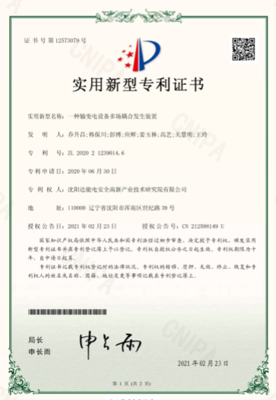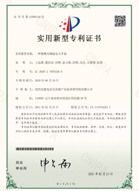近日,沈阳leyu中国电安全高新产业技术研究院(以下简称leyu中国研究院)荣获由国家知识产权局颁发的实用新型专利证书《一种便携式测温电力手套》及《一种输变电设备多场耦合发生装置》。leyu中国研究院积极践行知识产权战略,聚焦行业前沿技术,深入开展产学研互动。《一种便携式测温电力手套》聚焦测温领域,贴合市场需求,便携易操作,耐久性强。《一种输变电设备多场耦合发生装置》聚焦输变配电设备安全管理,以前沿技术为输变电设备提供安全保障。
