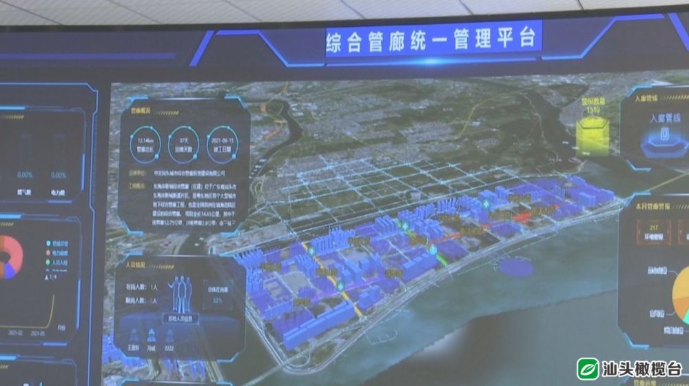 东海岸新城综合管廊工程位于汕头东海岸新城新溪片区,是粤东地区首个大型城市地下综合管廊工程,也是全国首例在填海造陆区建设的综合管廊。管廊全长约14.54公里,分为三纵三横6条管廊,采用三舱设计,电力、燃气管道分别为独立舱,通讯、给水管线为综合舱。为了实现管廊的智能化全程监测控制,项目还专门设置了一个4层楼高的监控中心。