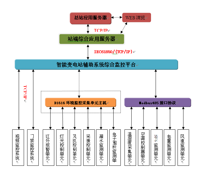 通过采集和传输技术的应用,利用我公司D1616辅助控制主机,可以实时监测某些重要场所和设备的工作环境(如:电压、电流、温度、湿度、漏水、水位、有害气体、含氧量、风速风向、烟雾、明火等等);当工作环境出现异常时,可及时显示、报警,并可通过通信IP网络将数据上传至市级和省级调度中心。
